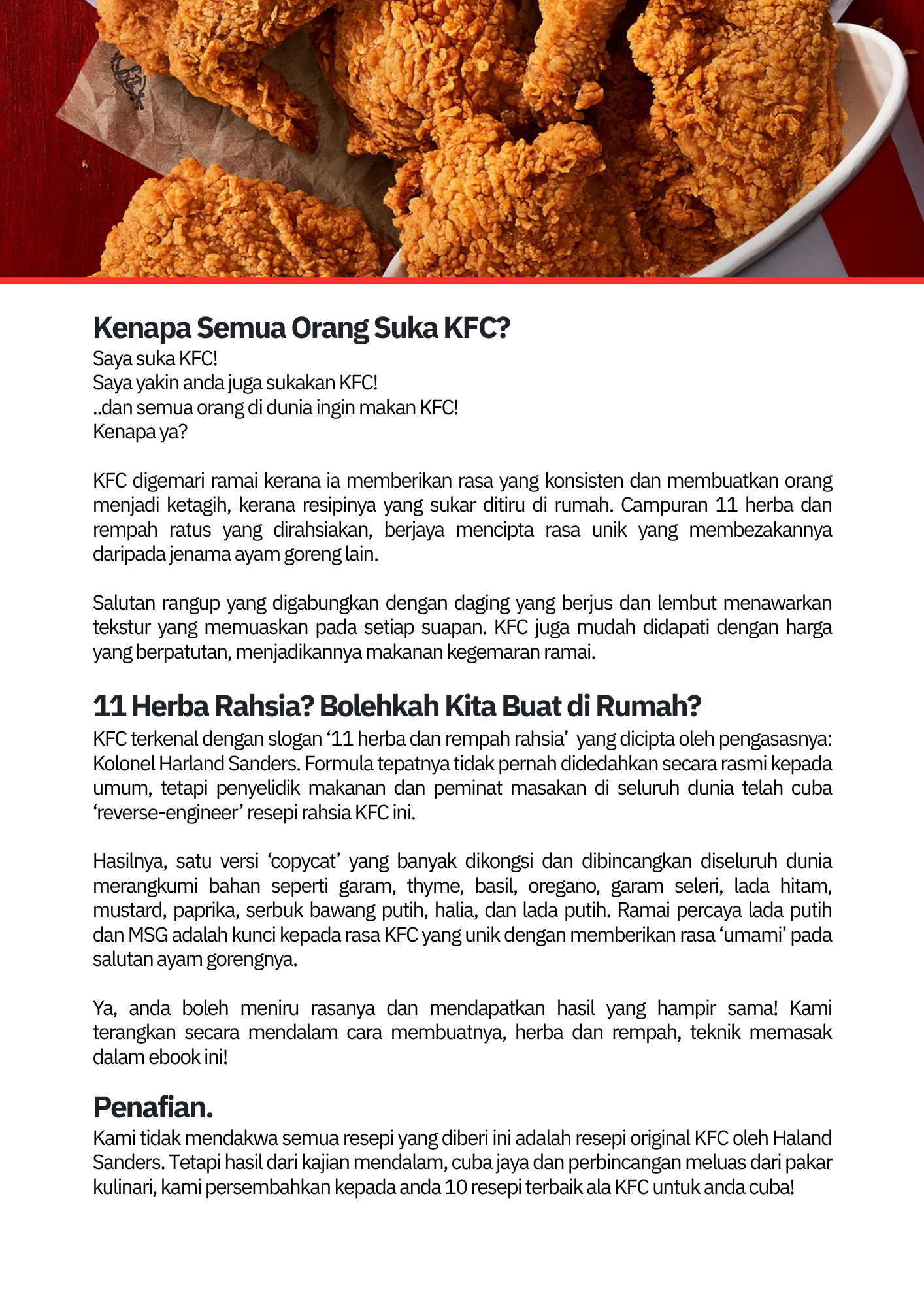 Pakej Resipi KFC Budget!